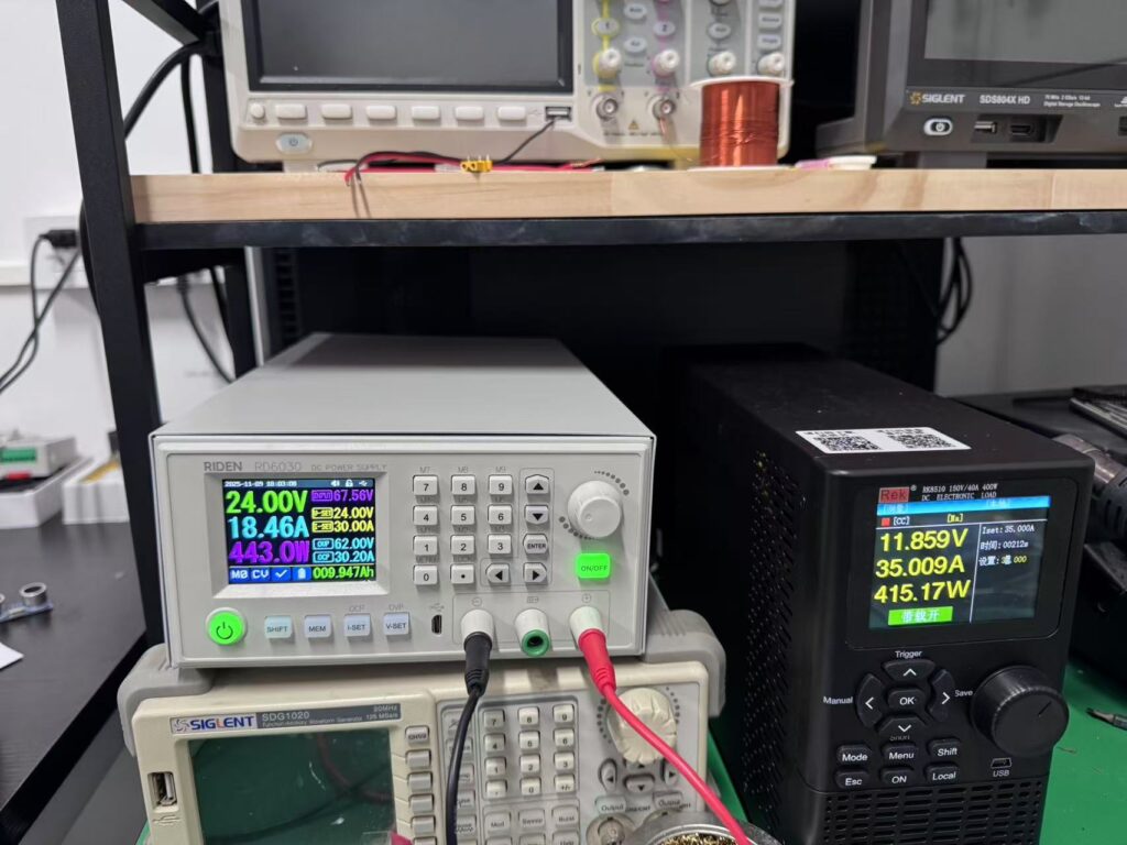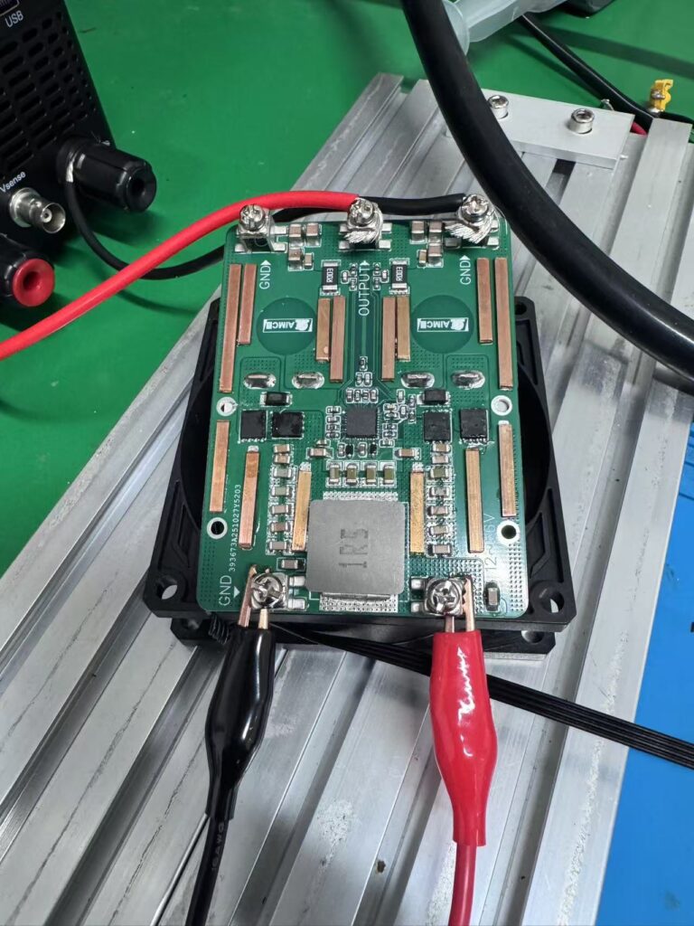 2025年11月09日 初步验证 散热条件主动风冷室温25℃输入电压24V输出电压12V最大输出电流35A最大负载输出电压12.06最大负载输出功率(板端)422.95W最大负载输入功率(板端)436.21W最大负载效率96.95%最大负载稳定温度(MOS管)80.3℃ 浏览量: 11 文章导航 【AIMC项目/方案】LM706A0高功率密度降压转换器方案/评估板 【AIMC项目/方案】LM5145宽输入DCDC降压电路-MAX20A