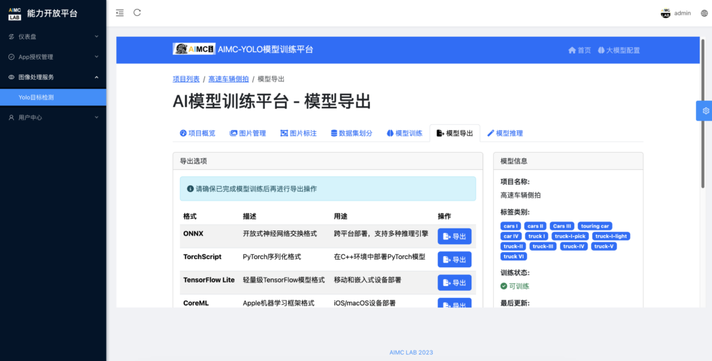 首先获取yolo v8权重文件,可以使用官方预训练pt文件,或自行训练(或者使用AIMC YOLO在线训练平台)