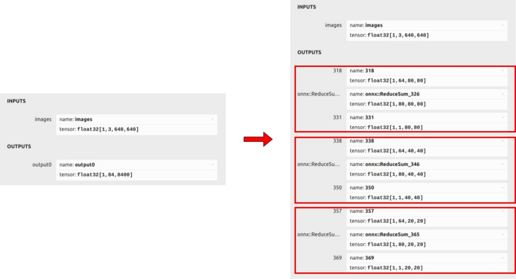 (rknn_venv) root@aimc-AI:/home/aimc/Project/rknn# python test/rknn_transfer_yolov8.py Ultralytics YOLOv8.2.82 🚀 Python-3.12.3 torch-2.3.1+cpu CPU (unknown) Model summary (fused): 168 layers, 3,008,183 parameters, 0 gradients, 8.1 GFLOPs PyTorch: starting from '/home/aimc/Project/rknn/test/model.pt' with input shape (1, 3, 640, 640) BCHW and output shape(s) ((1, 64, 80, 80), (1, 13, 80, 80), (1, 1, 80, 80), (1, 64, 40, 40), (1, 13, 40, 40), (1, 1, 40, 40), (1, 64, 20, 20), (1, 13, 20, 20), (1, 1, 20, 20)) (5.9 MB) RKNN: starting export with torch 2.3.1+cpu... RKNN: feed /home/aimc/Project/rknn/test/model.onnx to RKNN-Toolkit or RKNN-Toolkit2 to generate RKNN model. Refer https://github.com/airockchip/rknn_model_zoo/tree/main/models/CV/object_detection/yolo RKNN: export success ✅ 0.2s, saved as '/home/aimc/Project/rknn/test/model.onnx' (11.5 MB) Export complete (0.5s) Results saved to /home/aimc/Project/rknn/test Predict: yolo predict task=detect model=/home/aimc/Project/rknn/test/model.onnx imgsz=640 Validate: yolo val task=detect model=/home/aimc/Project/rknn/test/model.onnx imgsz=640 data=/home/aimc/SERVER/yolo_web/YoloUltralyticsWeb/static/datasets/1/data.yaml Visualize: https://netron.app